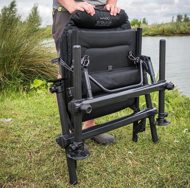 The Matrix XR36 Pro Accessory Chair features four fully adjustable 36mm extendable legs and an oversized extra padded seat cushion for additional comfort. With the whole seat and legs folding flat for easy transportation and a deluxe padded seat cushion for maximum comfort. Supplied with a detachable shoulder strap.