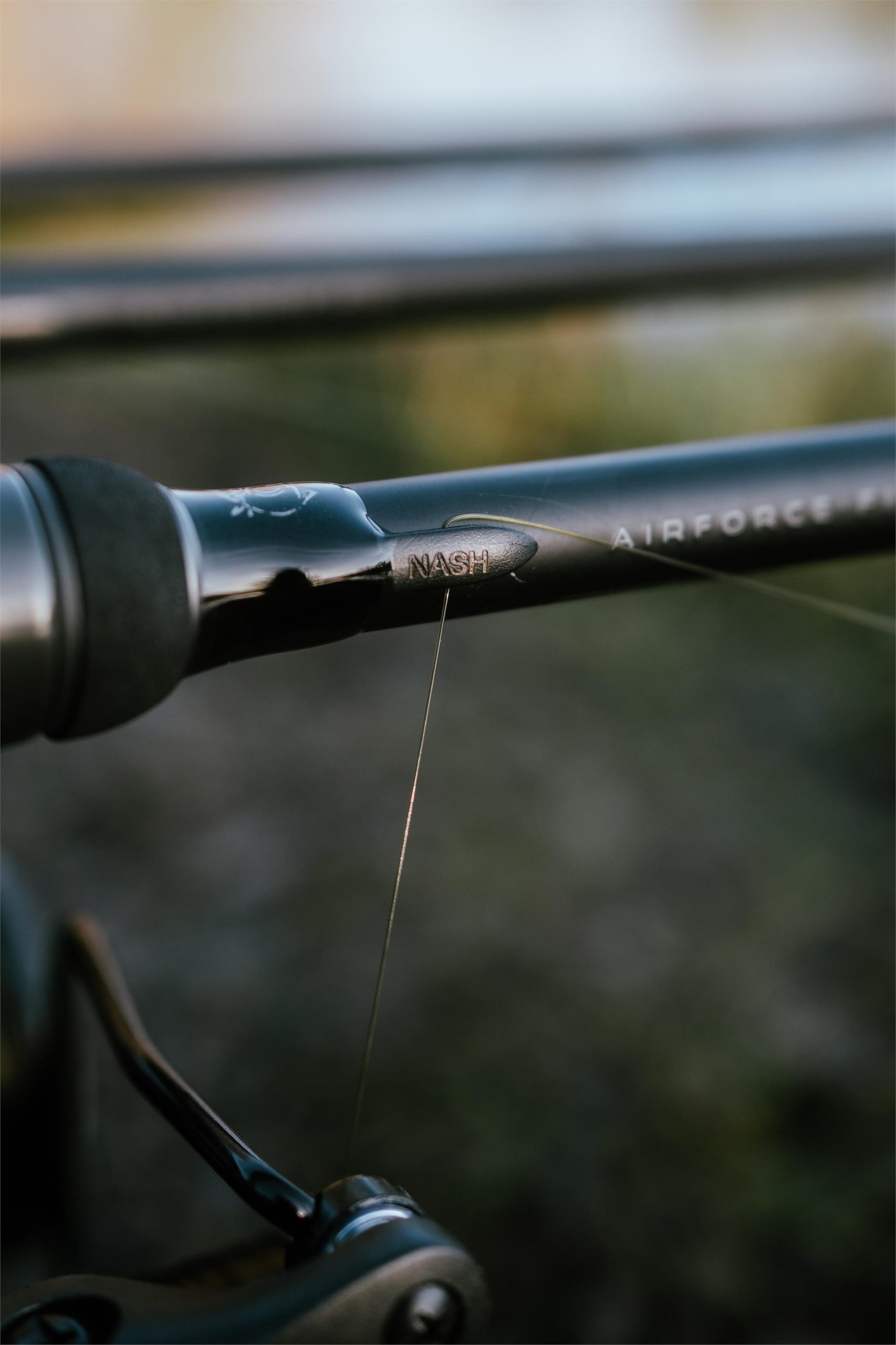 Each rod features a low-glare matt finish with gloss black whippings and minimal Air Force branding, creating a modern, understated aesthetic. A precision-positioned Fuji reel seat with gunsmoke hoods enhances casting efficiency, paired with a discreet Nash line clip located directly ahead of the reel seat for practical, consistent line management.